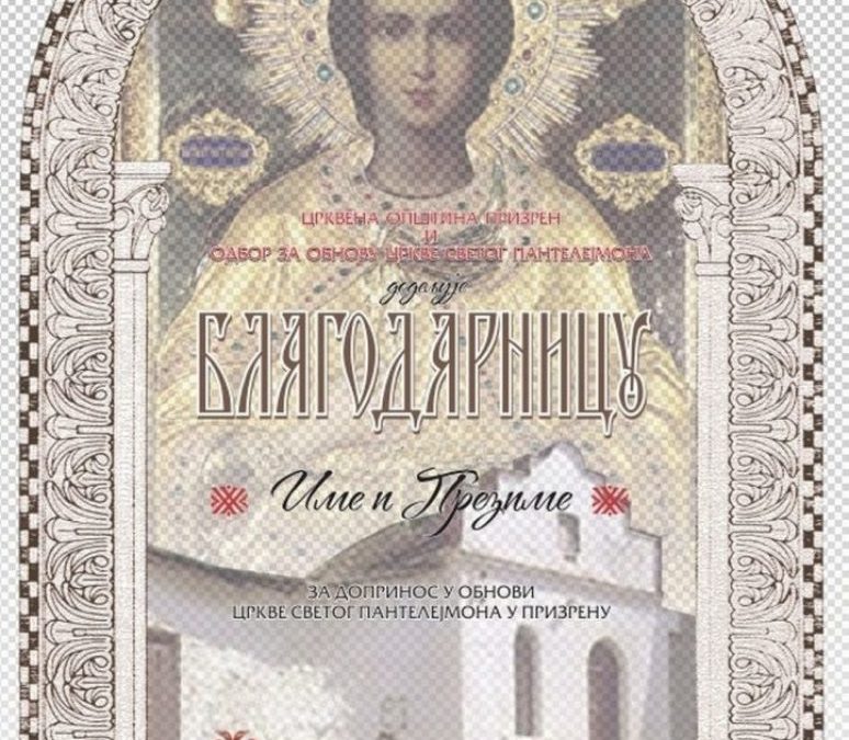 Στο πλαίσιο αυτό διενεργήθηκε και ολοκληρώθηκε με επιτυχία η πρωτοβουλία συγκέντρωσης χρημάτων για την ανακαίνιση του ιστορικού ναού του Αγίου Παντελεήμονα στο Πρίζρεν, τη δεύτερη μεγαλύτερη πόλη του Κοσσυφοπεδίου.