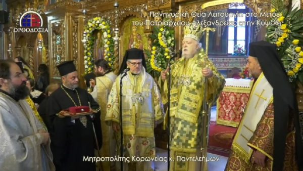 Στις 16:45 παρακολουθήστε αποσπάσματα από την Πανηγυρική Θεία Λειτουργία στον ναό Αγίου Αθανασίου στην Κυψέλη, μετόχι του Πατριαρχείου Αλεξανδρείας, που τελέστηκε το 2020, προεξάρχοντος του Μητροπολίτη Κορωνείας κ. Παντελεήμονος και των Μητροπολιτών Γουινέας κ. Γεωργίου, εκπρόσωπου του Πατριάρχη Αλεξανδρείας κ.κ. Θεοδώρου στην Αθήνα, και Πτολεμαΐδος κ. Εμμανουήλ. Ακολούθησε ιερά λιτάνευση της εικόνας του Αγίου Αθανασίου στους δρόμους της Κυψέλης.