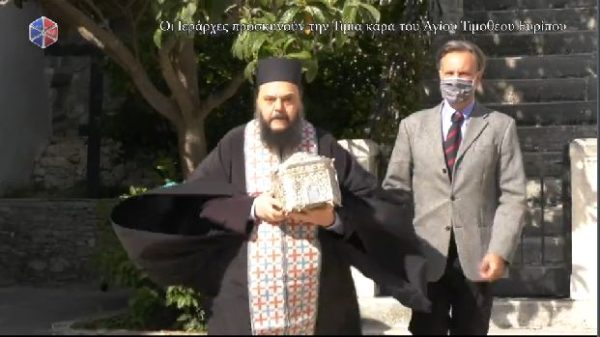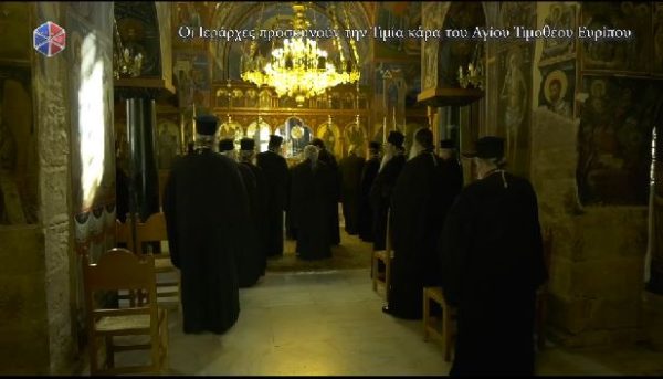 Προς προσκύνηση τέθηκε η Τιμία Κάρα του Αγίου Τιμοθέου Επισκόπου Ευρίπου, κτήτορα της Ιεράς Μονής Κοιμήσεως της Θεοτόκου Πεντέλης, κατά την διάρκεια της τέταρτης μέρας των εργασιών της Ιεράς Συνόδου της Ιεραρχίας της Εκκλησίας της Ελλάδος, στην φερώνυμη Μονή, στις 7 Οκτωβρίου 2021.