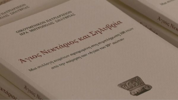 Στις 12:10 και σε επανάληψη στις 20:10 παρακολουθήστε στην ψηφιακή τηλεόραση της Pemptousia TV την παρουσίαση του βιβλίου «Άγιος Νεκτάριος και Σηλυβρία – Μια συλλογή κειμένων αφιερωμένη στη συμπλήρωση 100 ετών από την κοίμηση του ‘Αγίου του 20ου αιώνα’».