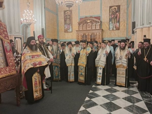 Εὐχαριστοῦμε ἀκόμη τήν παρισταμένη τῶν Σεβασμιωτάτων καί Θεοφιλεστάτων Ἀρχιερέων χορεία, τόν Σεβασμιώτατο Μητροπολίτη Χαλκίδος, Ἰστιαίας καί Βορείων Σποράδων κ. Χρυσόστομο, ἐκπρόσωπο τῆς Διαρκοῦς Ἱερᾶς Συνόδου καί τοῦ Μακαριωτάτου Ἀρχιεπισκόπου Ἀθηνῶν καί πάσης Ἑλλάδος κ. Ἱερωνύμου, καί τούς Ἀγαπητούς ἐν Χριστῷ Ἀδελφούς, οἱ ὁποῖοι προσέτρεξαν στό ταπεινό μας κάλεσμα, γιά νά ἀποτίσουν φόρο τιμῆς, ἀγάπης καί εὐλαβείας στήν Κυρία Θεοτόκο, καί νά ἀνατείνουν προσευχητικά ὁσίες ἀρχιερατικές χεῖρες ὑπέρ τῶν ἀειμνήστων προγόνων μας.
