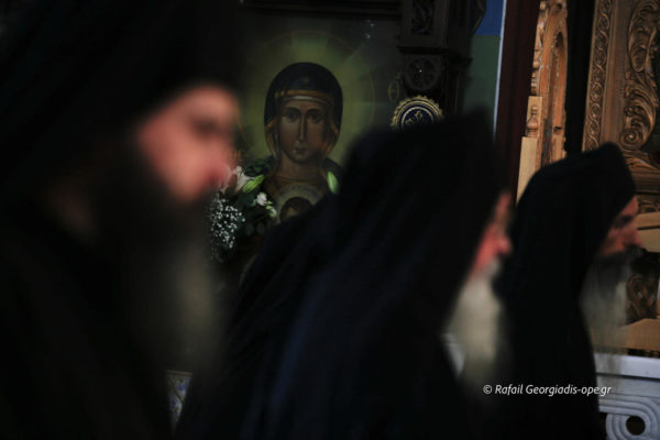 19.40 Ο Προκαθήμενος της Ορθοδοξίας έφτασε μπροστά στη θαυματουργή εικόνα “Άξιον Εστίν”. Έσκυψε ευλαβικά και την ασπάσθηκε τρεις φορές.