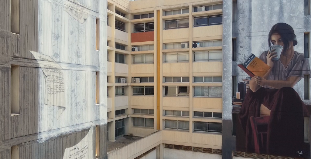 Εικαστικά έργα τοποθετήθηκαν σε όλους τους ορόφους του κτηρίου, ενώ στον εξωτερικό τοίχο φιλοξενείται το «Ημερολόγιο ενός αθέατου Απριλίου», έργο του καλλιτέχνη Simple G, εμπνευσμένο από την ομώνυμη ποιητική σύνθεση του Οδυσσέα Ελύτη.