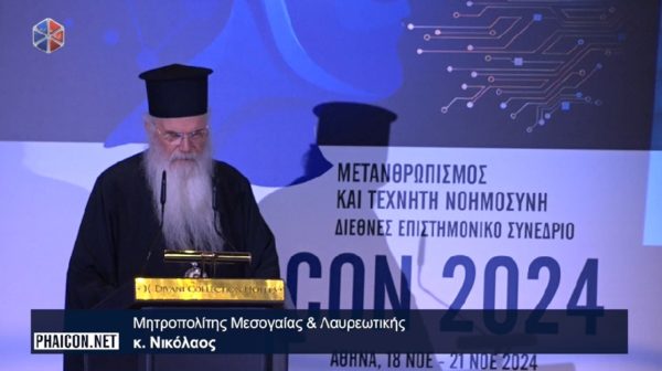 Το Διεθνές Επιστημονικό Συνέδριο «Μετανθρωπισμός και Τεχνητή Νοημοσύνη (PHAICON24)», πραγματοποιήθηκε με τη συμμετοχή 115 εισηγητών από 18 χώρες, στις 18-21 Νοεμβρίου 2024, στην Αθήνα. Διοργανωτές του Συνεδρίου ήταν το Ινστιτούτο «Άγιος Μάξιμος ο Γραικός» και Γραφείο Ορθόδοξης Εκκλησίας στην Ευρωπαϊκή Ένωση.