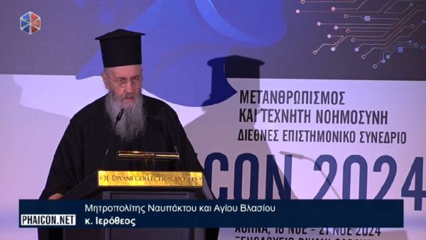 Την εισήγηση του Μητροπολίτη Ναυπάκτου και Αγίου Βλασίου κ. Ιερόθεου με θέμα: «Τεχνητή Νοημοσύνη: πρόβλημα ορολογίας».