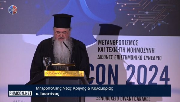 Την εισήγηση του Μητροπολίτη Νέας Κρήνης και Καλαμαριάς κ. Ιουστίνου με θέμα: «Από τον άνθρωπο της αγάπης του Θεού στον μετάνθρωπο της εποχής της ΤΝ – Salto mortale ή πολύς λόγος για το τίποτα;».