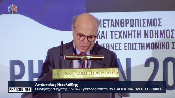 Την κεντρική διάλεξη του Απόστολου Νικολαΐδη, Ομότιμου Καθηγητή Θεολογίας στο ΕΚΠΑ & Πρόεδρου Ινστιτούτου Άγιος Μάξιμος ο Γραικός, με θέμα: «Από τον φυσικό άνθρωπο των ορίων στον εκτός ορίων τεχνητό μετα-άνθρωπο».