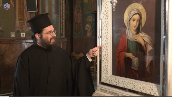 Ο Αρχιμανδρίτης π. Τιμόθεος Αγγελής, Προϊστάμενος του Ιερού Προσκυνήματος Αναστάσεως Χριστού Σπάτων, μιλάει στον δημοσιογράφο Δημήτρη Στρουμπάκο, για την Εφέστιο Εικόνα του ναού, καθώς και για την θαυμαστή παρουσία της Αγίας Φωτεινής, σε κατοίκους της περιοχής, λίγο πριν από τα εγκαίνια του Ναού το 1935.