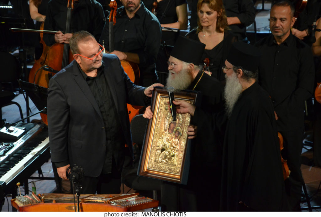Λίγο πριν το τέλος της μοναδικής βραδιάς στη σκηνή ανέβηκε ο Καθηγούμενος της Ιεράς Μεγίστης Μονής Βατοπαιδίου, Αρχιμανδρίτης Εφραίμ: