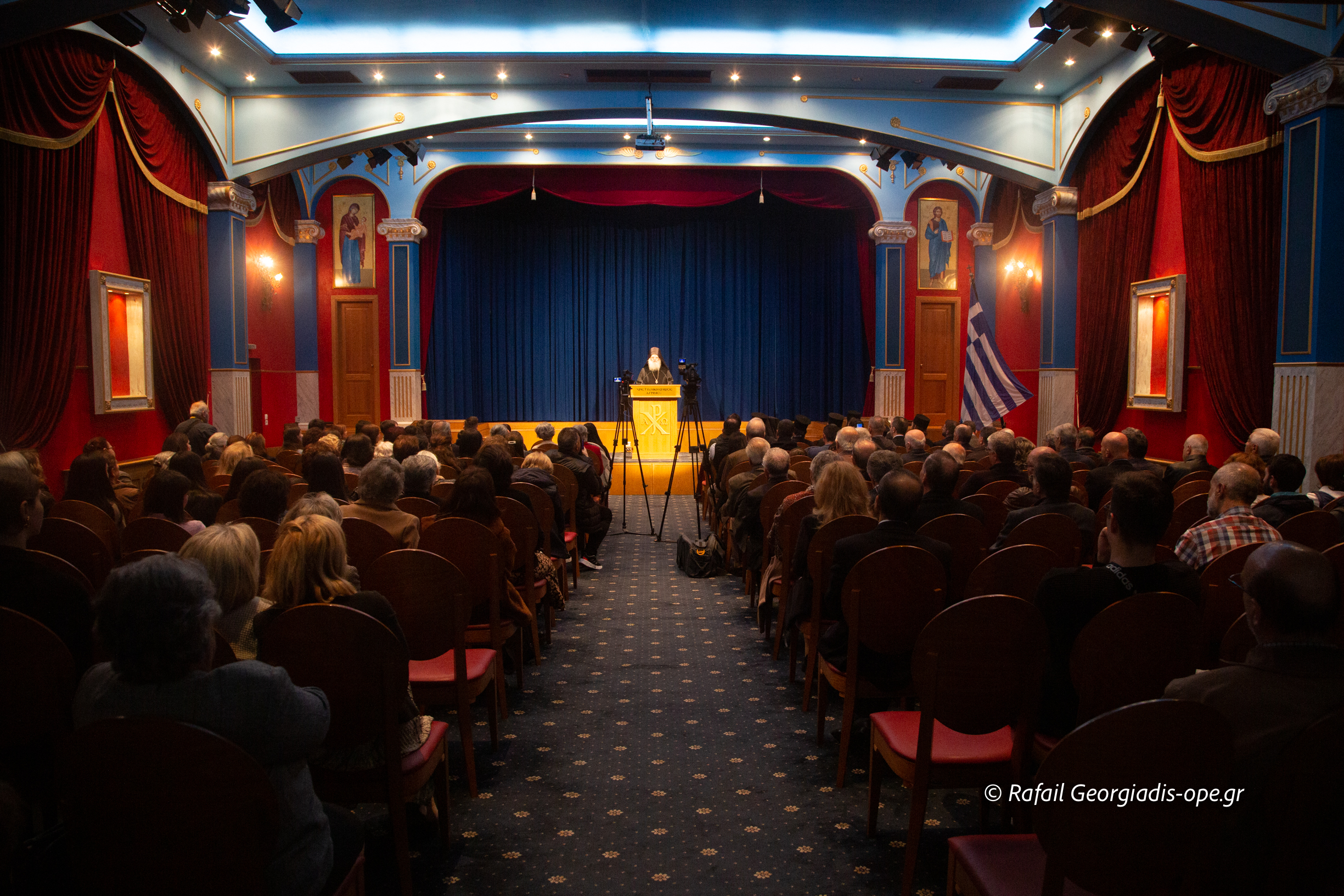 Η ομιλία πραγματοποιήθηκε στο πλαίσιο της έλευσης της Τιμίας Κάρας του Αγίου Ιωάννου του Χρυσοστόμου στο Αγρίνιο από την Ιερά Μεγίστη Μονή Βατοπαιδίου.