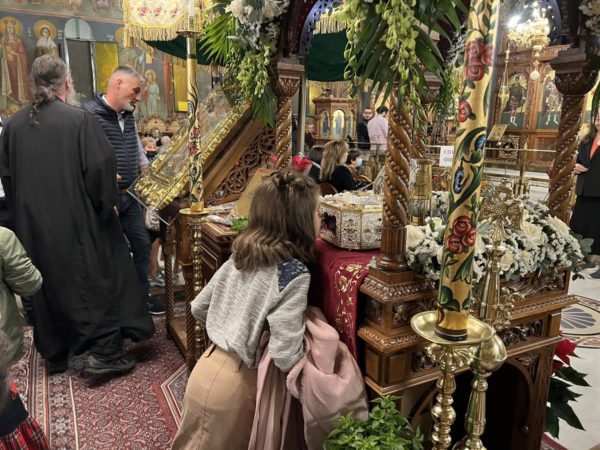 Χιλιάδες πιστοί προσήλθαν στον Ιερό Ναό του Αγίου Ελευθερίου Αχαρνών προκειμένου να προσκυνήσουν την Τιμία Κάρα του Αγίου Ιωάννου του Χρυσοστόμου, η οποία από τις 11 – 16 Νοεμβρίου 2023, τέθηκε στον ναό, προς προσκύνηση. Κατά την ιερά αγρυπνία, το βράδυ του Σαββάτου 11/11, ο Καθηγούμενος της Ιεράς Μεγίστης Μονής Βατοπαιδίου Γέροντας Εφραίμ ανέγνωσε δέηση.
