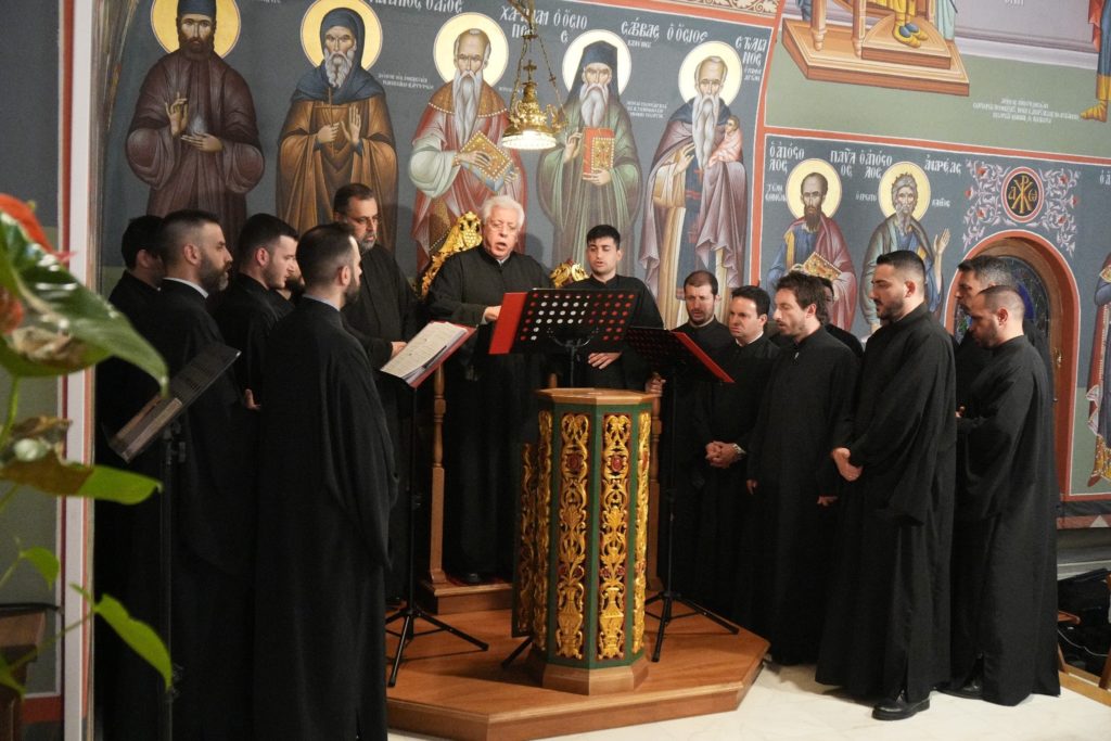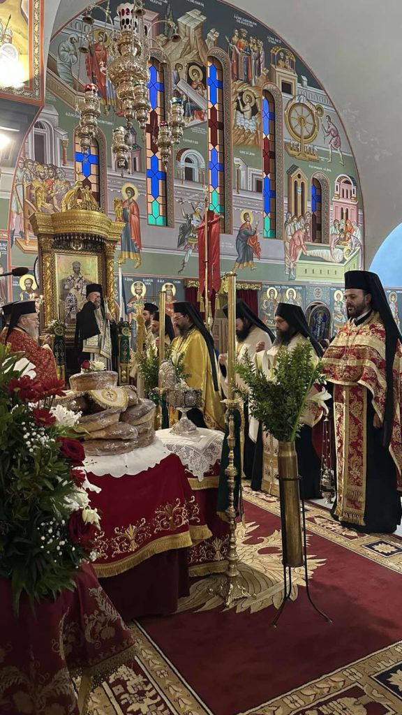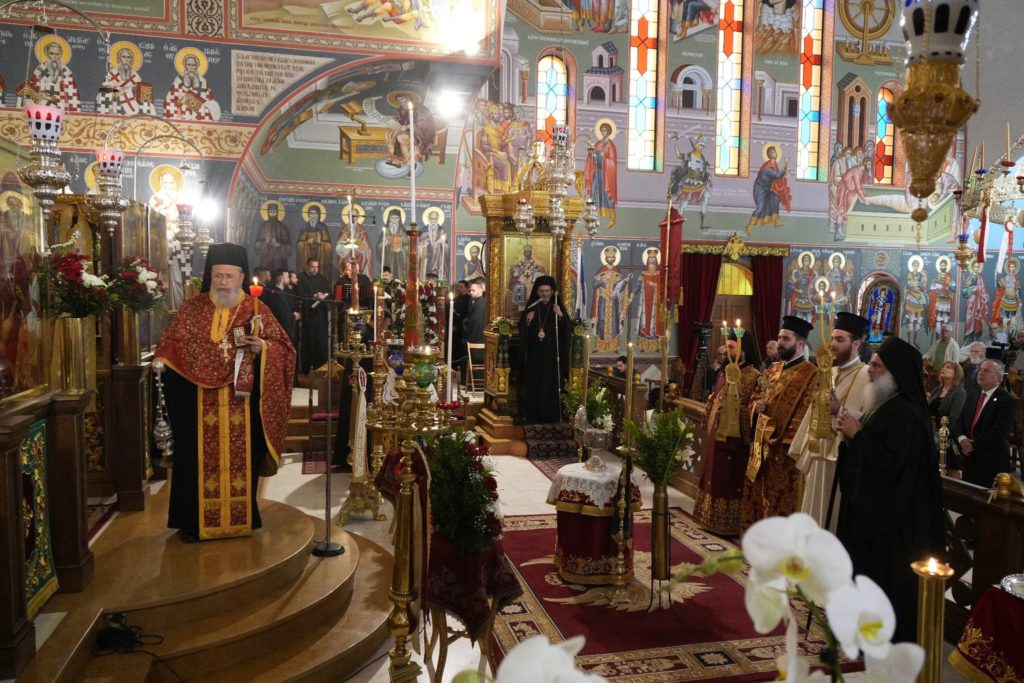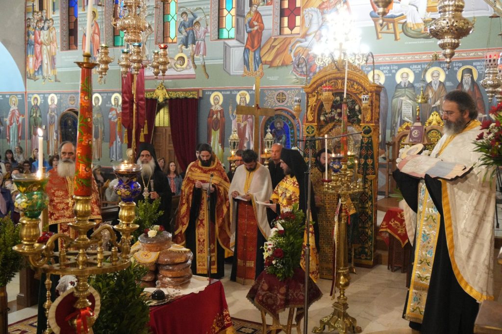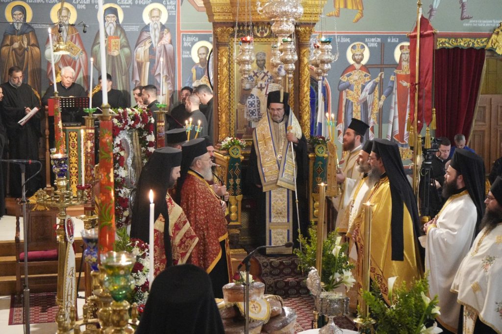 Της Θείας Λειτουργίας προέστη ο Πανοσιολογιώτατος Αρχιμανδρίτης Βαρνάβας Θεοχάρης, Πρωτοσύγκελλος της Ιεράς Αρχιεπισκοπής Αθηνών, πλαισιούμενος από τους ιερείς του ναού και κληρικούς της Ιεράς Αρχιεπισκοπής Αθηνών. Έψαλλε η Βυζαντινή Χορωδία υπό τη διεύθυνση του Πρωτοψάλτη Γεωργίου Κωνσταντίνου.