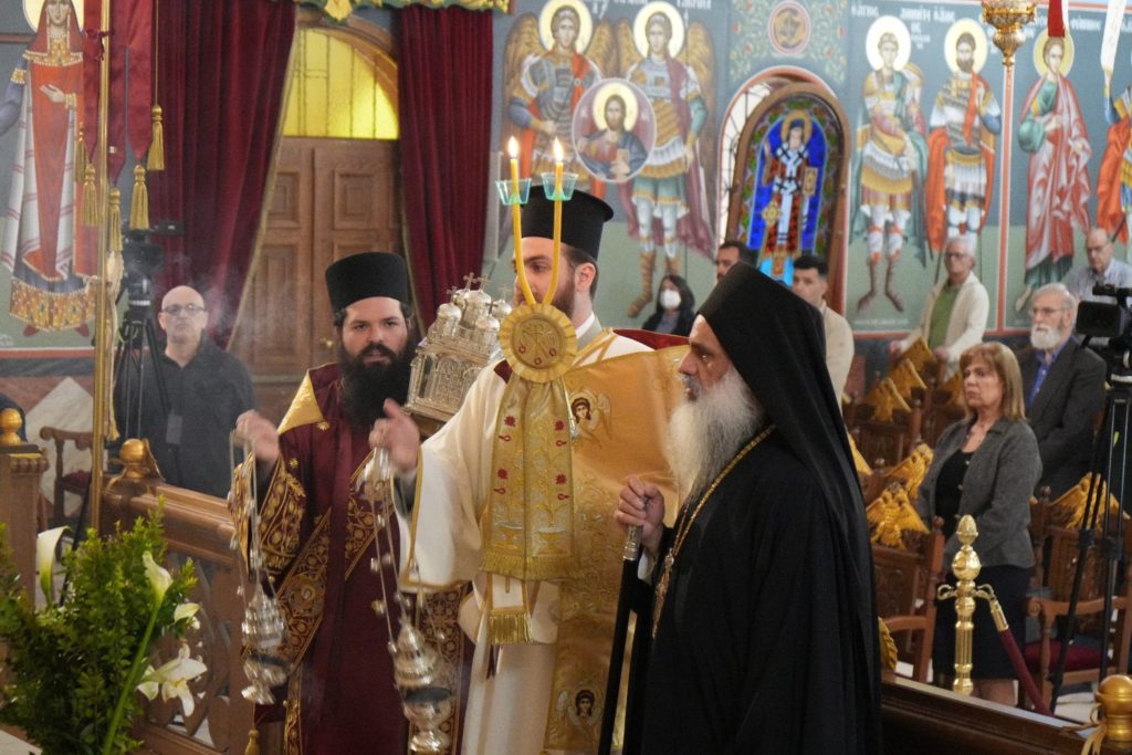 Την παραμονή της εορτής, Τρίτη της Διακαινησίμου, 22 Απριλίου 2025, τελέστηκε Μέγας Πανηγυρικός Εσπερινός στον οποίο χοροστάτησε ο Σεβ. Μητροπολίτης Κρήνης και Πατριαρχικός Έξαρχος Μελίτης κ. Κύριλλος. Η ιερά ακολουθία μεταδόθηκε ζωντανά από την διαδικτυακή τηλεόραση της Pemptousia TV.