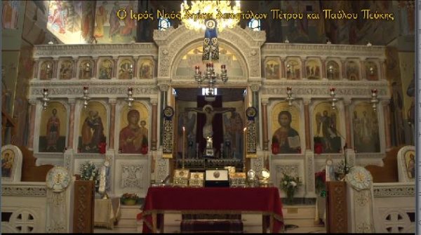 Στις 12.35 και σε επανάληψη στις 20.35 το αφιέρωμα στον Ιερό Ναό Αγίων Αποστόλων Πέτρου και Παύλου Πεύκης. Ο ιερός ναός των Αγίων Αποστόλων Πέτρου και Παύλου Πεύκης θεμελιώθηκε το 1971 ενώ το 1973 τελέσθηκε για πρώτη φορά Θεία Λειτουργία στο υπόγειό του, με πρώτο εφημέριο τον μακαριστό π. Ευθύμιο Μπεναρδή. Στο ναό φυλάσσεται εικόνα της Παναγίας από τη Μικρά Ασία καθώς και Λείψανα Αγίων.