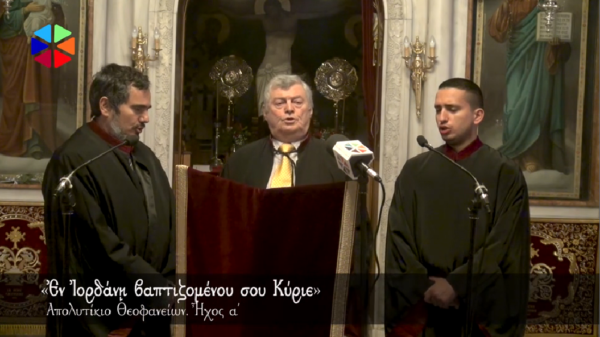 Ο Απόστολος Ιωαννίδης, Πρωτοψάλτης του Ιερού Ναού Αγ. Ελευθερίου Ντεπώ, ψάλλει το Απολυτίκιο των Θεοφανείων «Εν Ιορδάνη βαπτιζομένου Σου Κύριε, η της Τριάδος εφανερώθη προσκύνησις…»