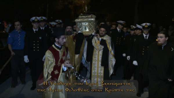 Δείτε σήμερα στις 16.30 την Υποδοχή του Σκηνώματος της Αγίας Φιλοθέης στην κρύπτη της, που πραγματοποιήθηκε στις 20 Νοεμβρίου 2022, με αφορμή τα 500 χρόνια από την γέννηση της.