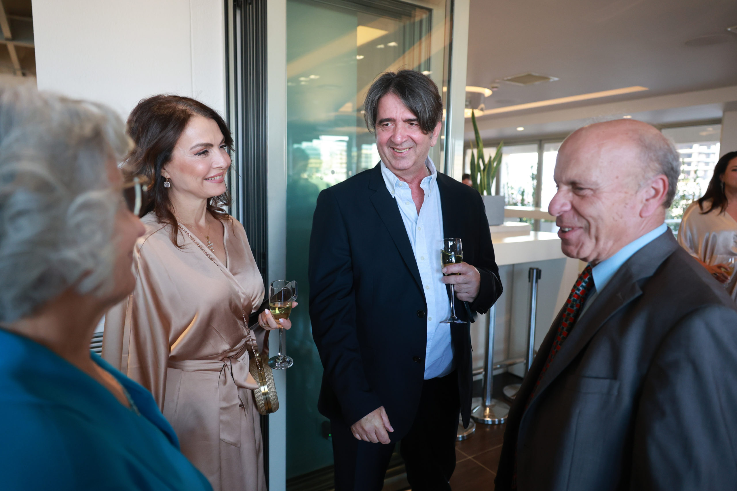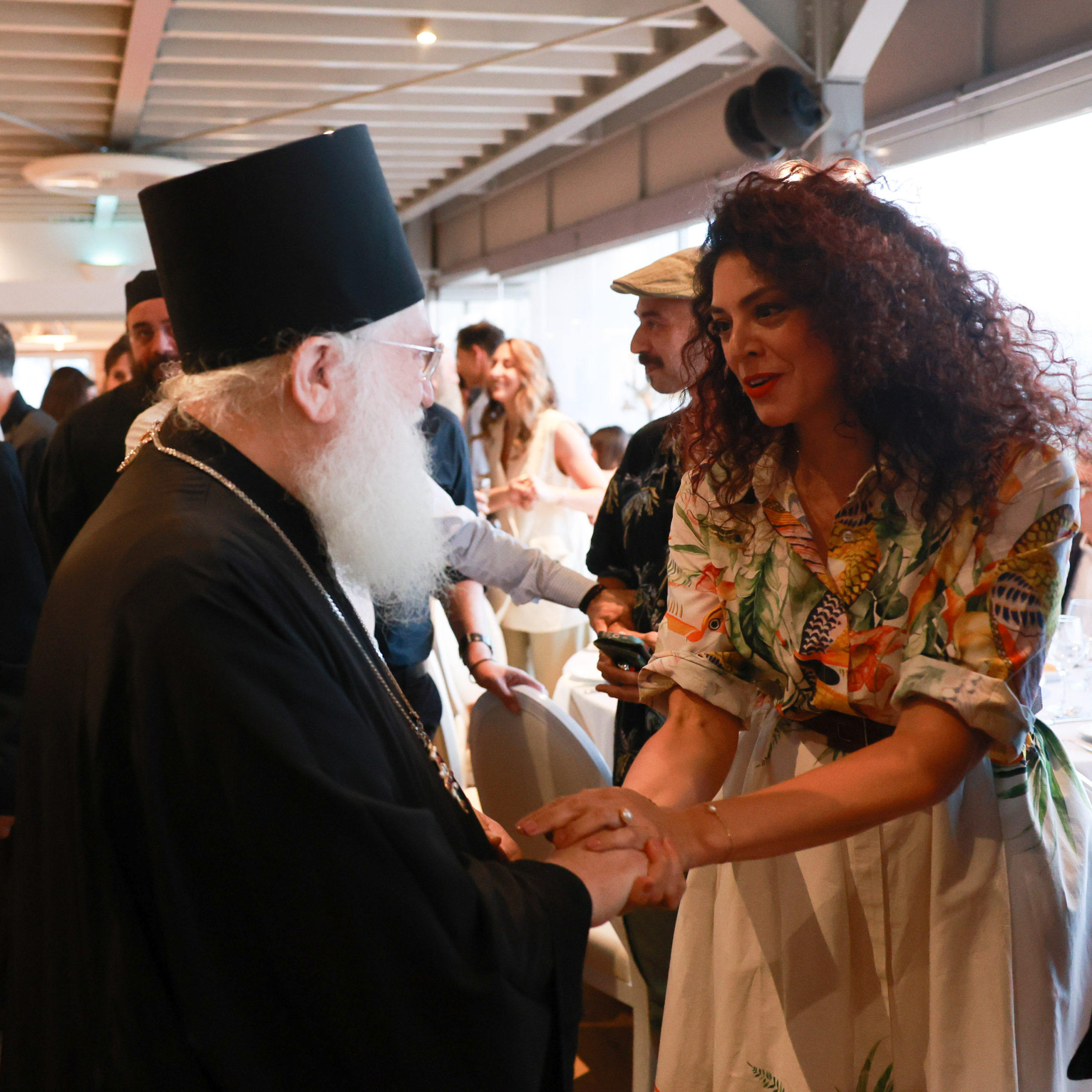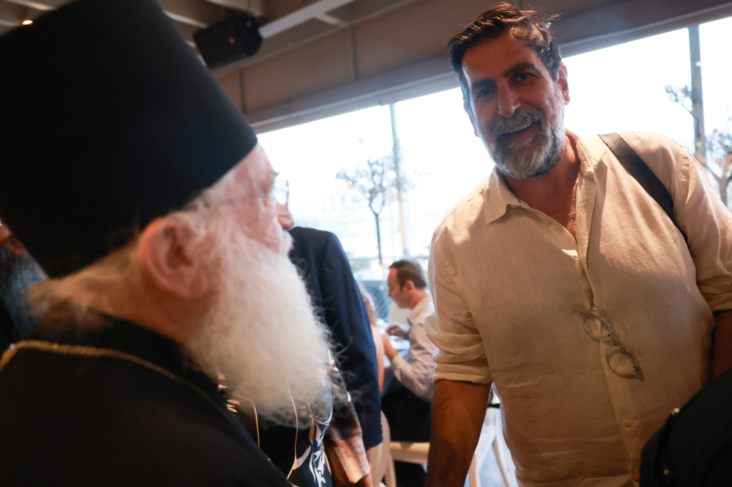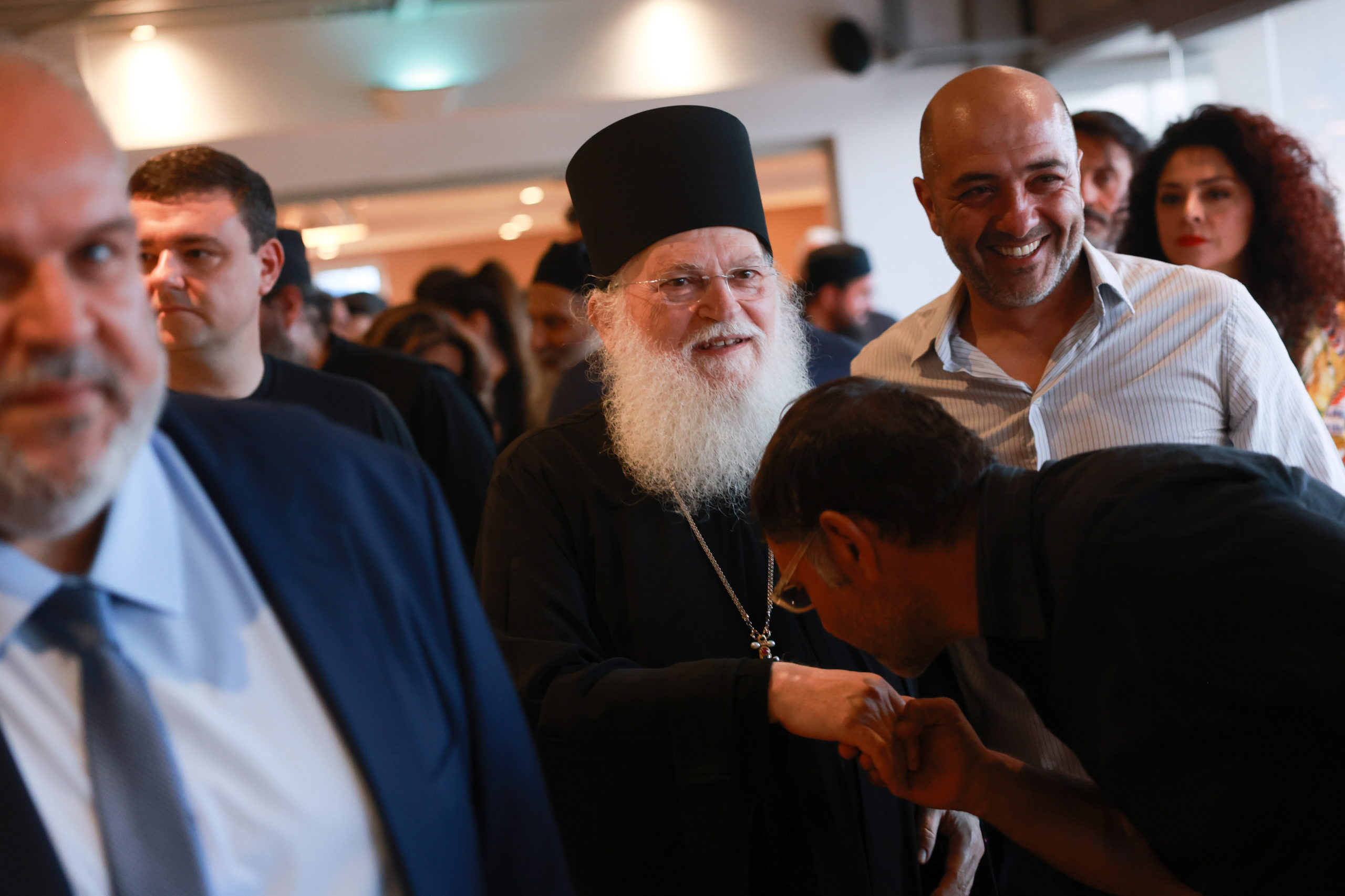 Ο πρόεδρος του Ινστιτούτου Άγιος Μάξιμος ο Γραικός Απόστολος Νικολαΐδης με τη σύζυγό του, ο σεναριογράφος Γιώργος Τσιάκκας, η Χριστίνα Παυλίδου