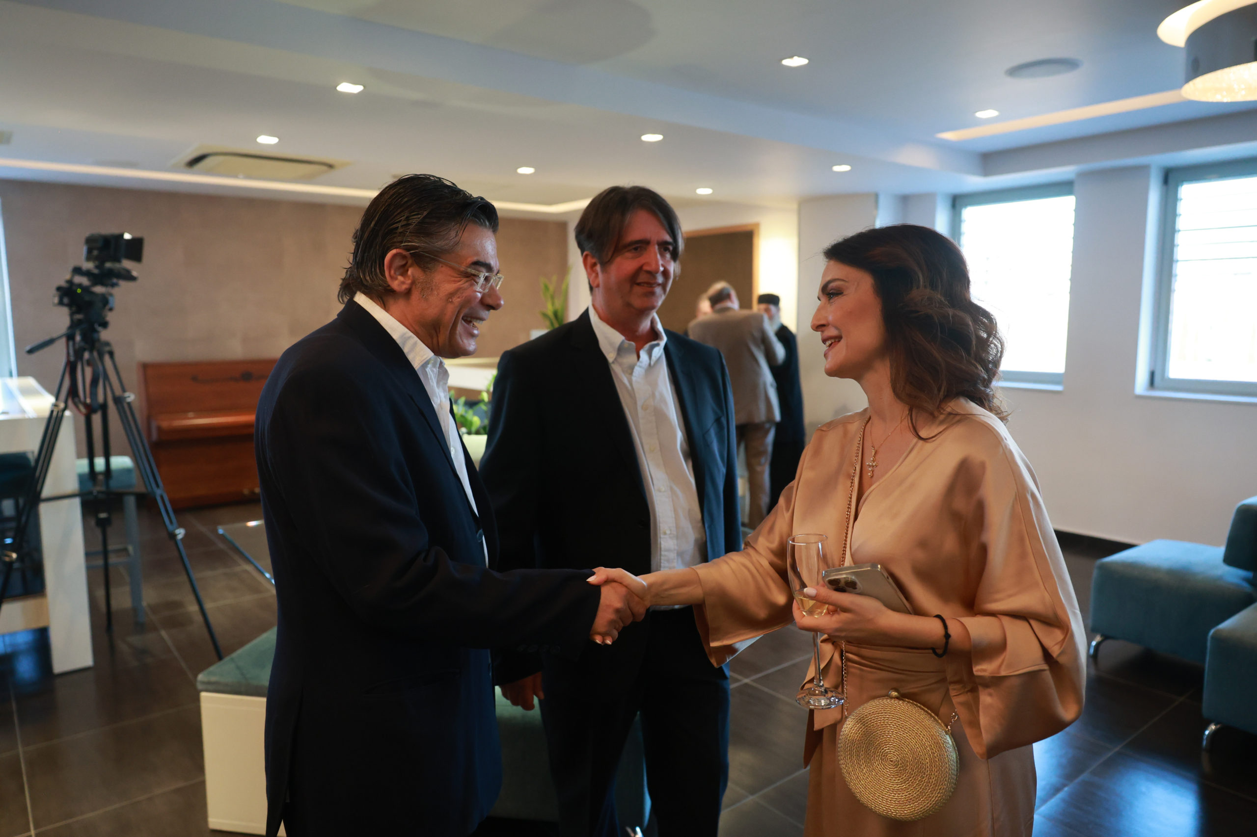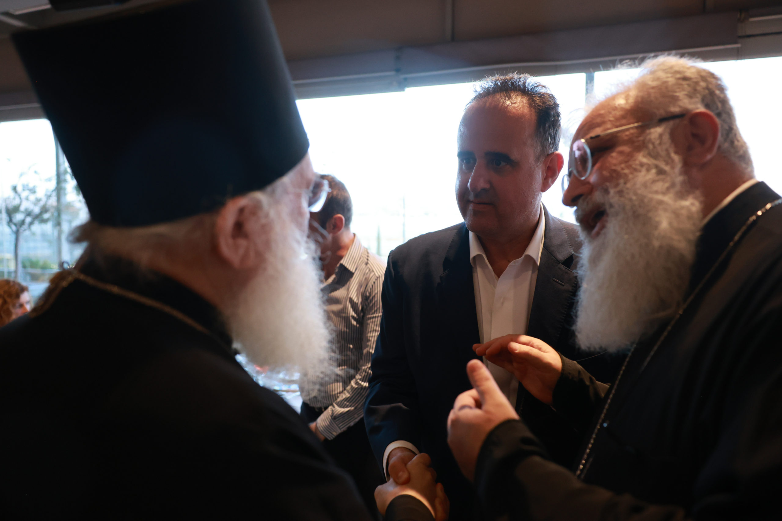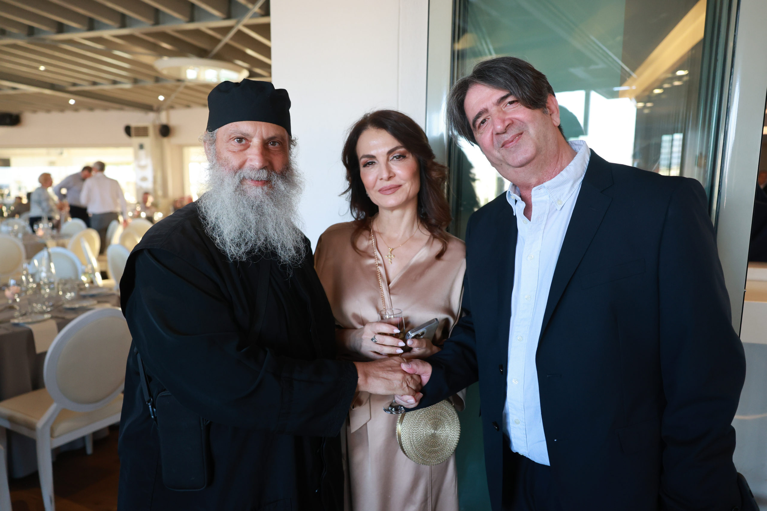 Ο Γενικός Διευθυντής του MEGA, Γιάννης Βρέντζος, το στέλεχος του ομίλου Παραπολιτικά π. Δημήτριος Φουρλεμάδης και η Γενική Διευθύντρια του Ινστιτούτου «Άγιος Μάξιμος ο Γραικός» Μαρία Γιαχνάκη