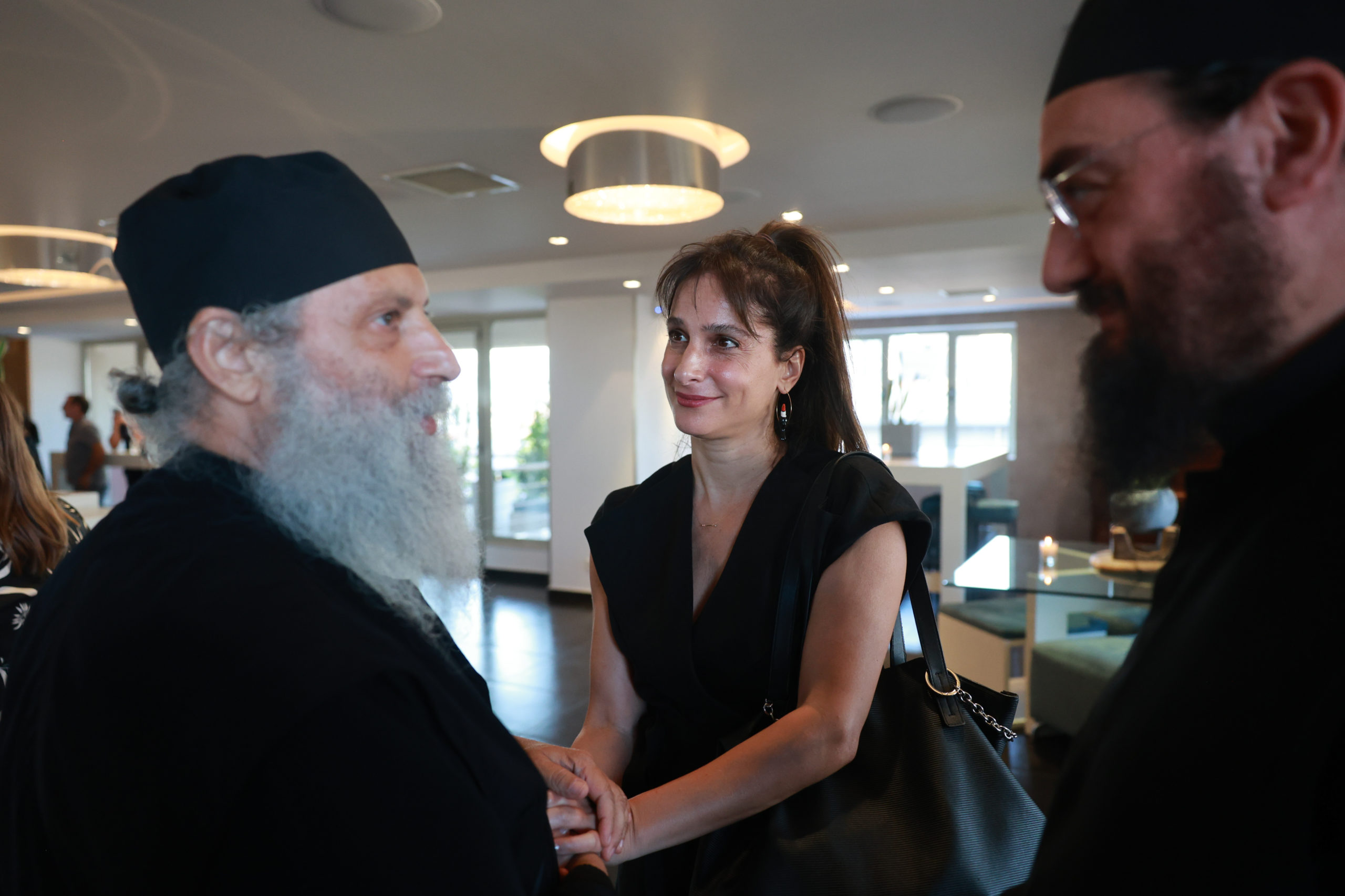 Ο σεναριογράφος της σειράς Γιώργος Τσιάκκας , η Χριστίνα Παυλίδου και ο ιερομόναχος π Ευδόκιμος Βατοπαιδινός