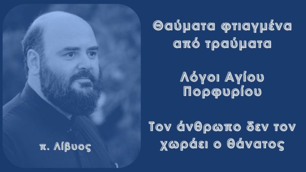 Ο π. Λίβυος, στην εκπομπή «Θαύματα φτιαγμένα από τραύματα – Λόγοι Αγίου Πορφυρίου», με θέμα «Τον άνθρωπο δεν τον χωράει ο θάνατος», μας εξηγεί ότι ο Όσιος Πορφύριος αυτό που μας λέει είναι ότι ο άνθρωπος διψάει για ουρανό και ότι έχει ανάγκη την προσευχή γιατί είναι πλασμένος για το αιώνιο.