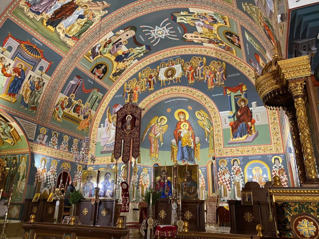 Στις Ιερές Ακολουθίες ψάλλει η Ελληνική Βυζαντινή Χορωδία υπό τη διεύθυνση του Γεωργίου Κωνσταντίνου.