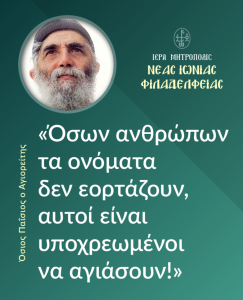 – Όσων ανθρώπων τα ονόματα δεν εορτάζουν, αυτοί είναι υποχρεωμένοι να αγιάσουν!