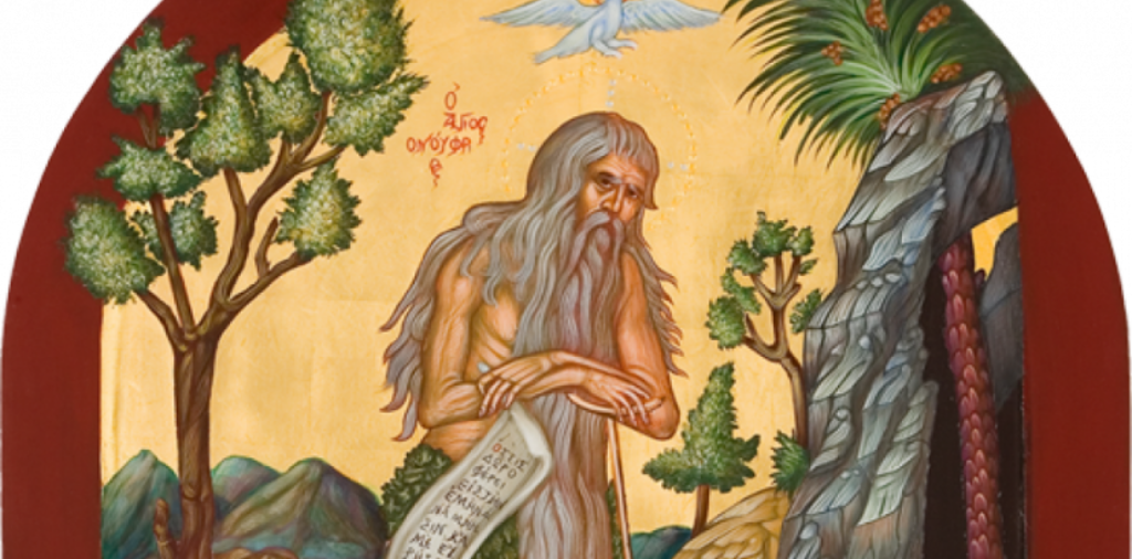 Στην συνέχεια, ο Όσιος Ονούφριος γονάτισε, ύψωσε τα χέρια και το βλέμμα του στον ουρανό και με δάκρυα στα μάτια προσευχήθηκε λέγοντας