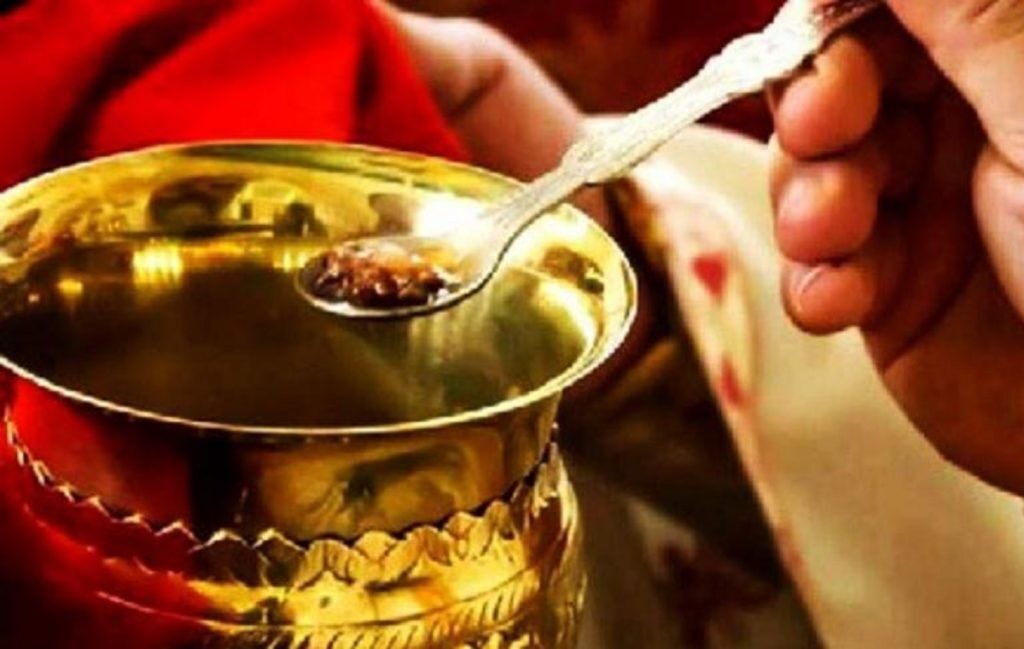 ῞Οταν, ἔλεγε, τοὺς κοινώνησα καὶ ἐπρόκειτο νὰ καταλύσω τὸ ῞Αγ. Ποτήριον, τραβήχθηκα πρὸς τὴν ὡραία Πύλη καὶ κατέλυσα ἐπιδεικτικὰ ἐνώπιον ὅλων, γιὰ νὰ μάθουν οἱ γιατροί, ὅτι ἡ θ. Κοινωνία εἶναι «πῦρ καταναλίσκον».