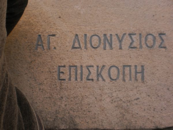 Τέλος, έξω από την κεντρική είσοδο του ναού υπάρχει ο θρόνος του Αγίου Διονυσίου απ΄όπου κήρυττε και μοίραζε το αντίδωρο στους πιστούς.