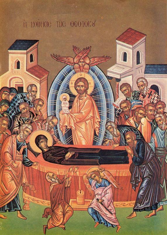 «Ας αγαλλιάσει η ψυχή μου για τον Κύριο και αυτό θα γίνει για μένα ευφροσύνη και αίνεση και μεγαλείο εκ μέρους όλων των εθνών της γης. Διότι μου συγκέντρωσε τα θεμέλια της Εκκλησίας, μου συνάθροισε τους άρχοντες της οικουμένης, τους θαυμαστούς υπηρέτες της κηδείας μου. (Ω μεγαλοφυές θαύμα! Ω έργο μητρικής αφοσιώσεως προς τον υιό! Ω δώρο υιικής σχέσεως προς τη μητέρα!). Σαν άλλος ουρανός μου φάνηκε το δωμάτιο, με το να περικλείει μέσα του τους φωστήρες του κόσμου. Ναός Κυρίου φάνηκε η οροφή, που έφερε κοντά μου τους θείους μύστες και Ιερουργούς. Δεν θα μελετήσει πια η συμμορία των Ιουδαίων να πραγματοποιήσει τον εναντίον μου παραλογισμό. Δεν θα οπλίσει πια εναντίον μου το θρασύ του χέρι, για να με φονεύσει το συνέδριο των ιερέων. (Διότι κάποτε το είχαν σχεδιάσει και , μαζί με τον Υιό, θα φόνευαν οι αιμοχαρείς και τη Μητέρα, αλλά απέτυχαν στο σκοπό τους, γιατί τους εμπόδισε άνωθεν η θεία πρόνοια). Μεταβιβάζομαι σε τόπους κατοικίας απαραβίαστους, όπου δεν μπορεί ο εχθρός να εισαγάγει τις παγίδες της κακίας· όπου θα μπορώ να αντικρύσω την τερπνότητα του Κυρίου και να επισκεφθώ το Ναό, εγώ ο παμφώτεινος ναός Του». Και τί είπαν τότε προς αυτήν οι μακάριοι απόστολοι με λόγια είτε δικά τους είτε διαλεγμένα από τα στόματα των προφητών;