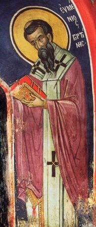 «Ο άγιος Ευμένιος (που έζησε κατά τον 7ο αιώνα) από τη νεότητά του υπέβαλε τον εαυτό του σε σκληρές πνευματικές ασκήσεις, τόσο που απέκτησε με τη χάρη του Θεού την άκρα ταπείνωση. Γι’ αυτό και η Εκκλησία του εμπιστεύτηκε την επισκοπή της κατά Γορτύνην εκκλησίας.