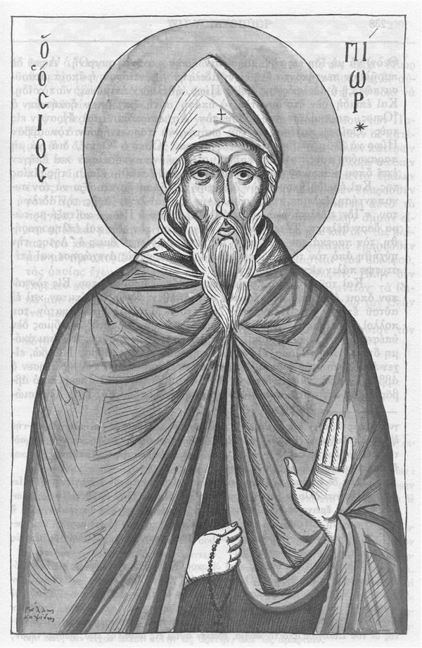 Όσιος Πίωρ. (Σχέδιο Ράλλης Κοψίδης από τον Μέγα Συναξαριστή της Ορθοδόξου Εκκλησίας, μήνας Ιούνιος, τόμος στ’)