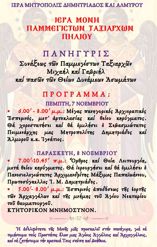 Στο Pemptousia FM ο Εσπερινός της εορτής των Παμμεγίστων Ταξιαρχών Μιχαήλ και Γαβριήλ στην Ι.Μ. Πηλίου