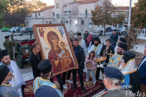 Αφορμή την έλευσης η επικείμενη πανήγυρη του Ιερού Καθεδρικού Ναού Παναγίας Ελευθερωτρίας Διδυμοτείχου. Η τοπική Εκκλησία προεξάρχοντος του Μητροπολίτου Διδυμοτείχου, Ορεστιάδος και Σουφλίου κ. Δαμασκηνού υποδέχθηκε την ιερά εικόνα με κάθε επισημότητα και με την παρουσία του Δημάρχου Διδυμοτείχου Ρωμύλου Χατζηγιάννογλου, του Διοικητού της XVI Μεραρχίας Στρατηγού Θεόδωρου Χατζηγεωργίου και του Υποδιοικητού της Ταξίαρχου Νικόλαου Γιοβανούδη.