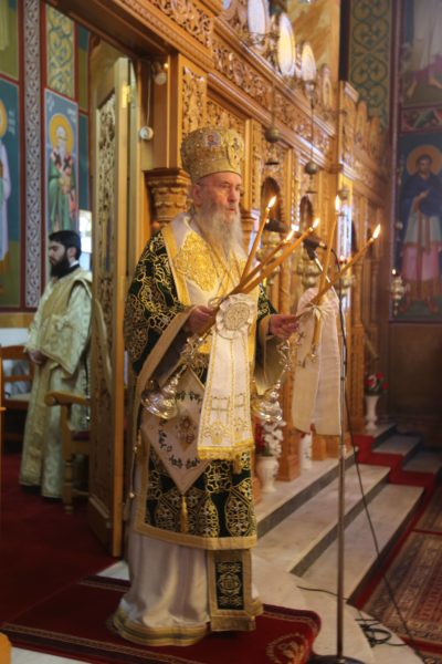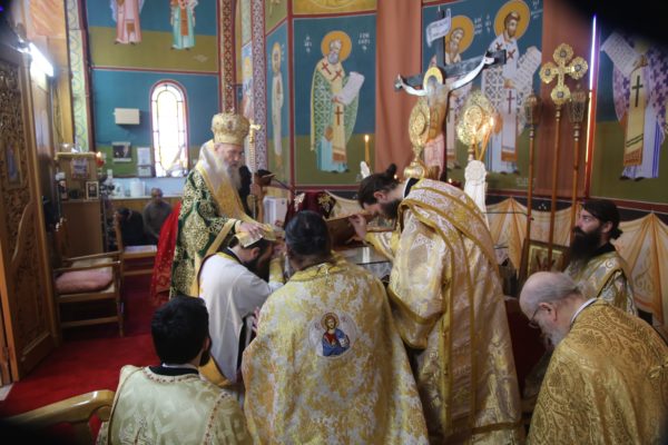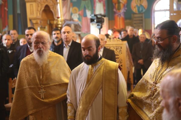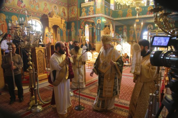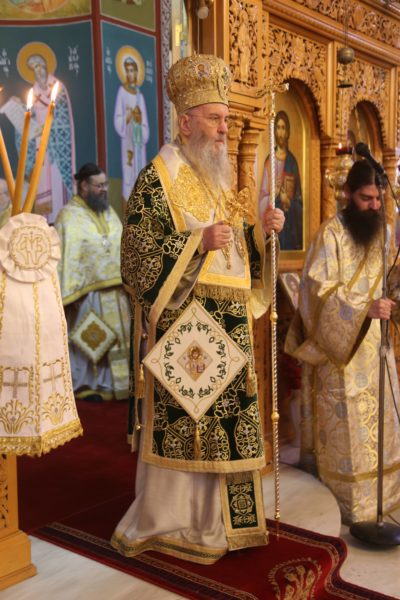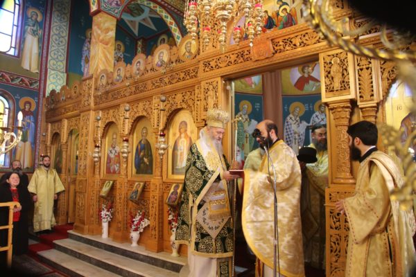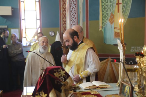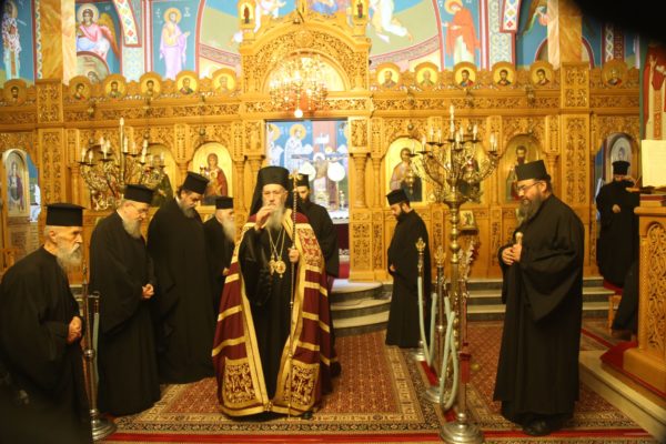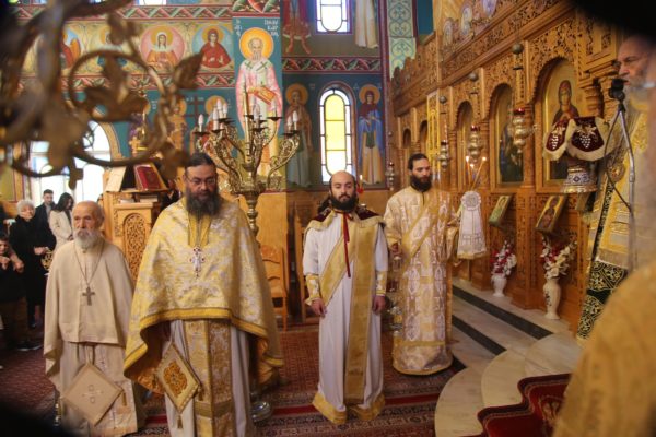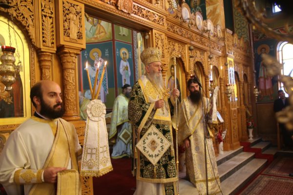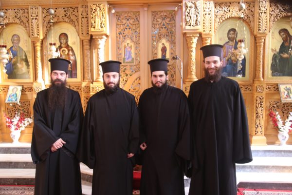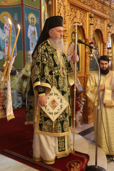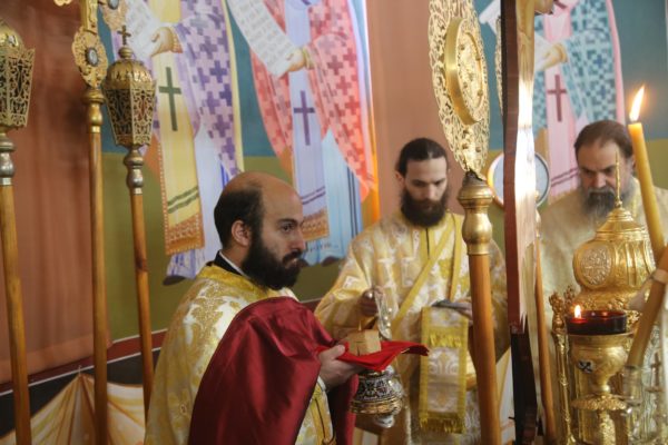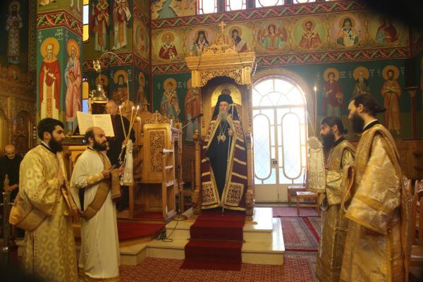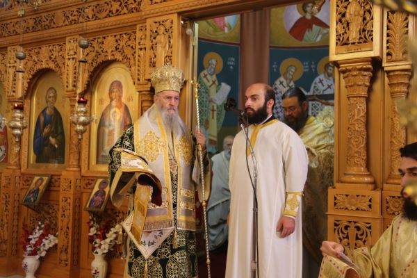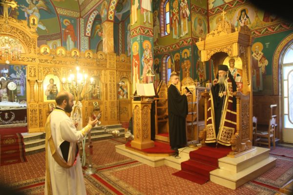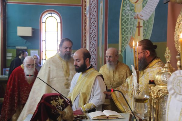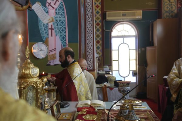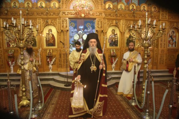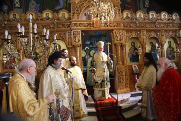 Με τον Σεβασμιώτατο συλλειτούργησαν οι Ιερείς: Αρχιμανδρίτης π. Πολύκαρπος Παστρωμάς, Ηγούμενος της Ιεράς Μονής Αμπελακιωτίσσης, Αρχιμανδρίτης π. Αντώνιος Βαζούρας, π. Θωμάς Βαμβίνης, Γενικός Αρχιερατικός Επίτροπος, Αρχιμανδρίτης π. Πολύκαρπος Θεοφάνης, ιεροκήρυξ, π. Ξενοφών Τριβήλος, Εφημέριος του Ιερού Ναού και οι Διάκονοι π. Παΐσιος Παρασκευάς, π. Αντώνιος Αντωνιάδης και π. Ιερόθεος Καλλίας.