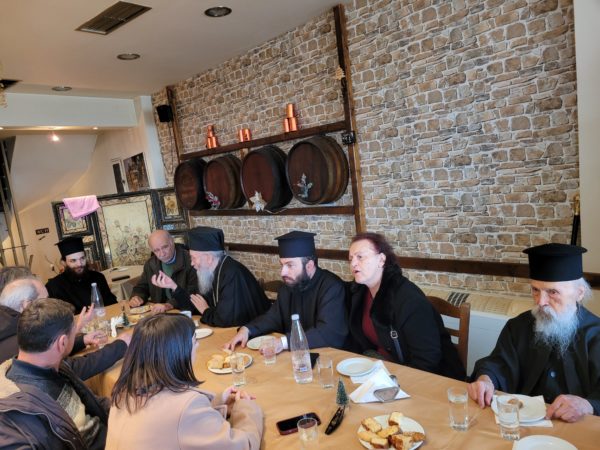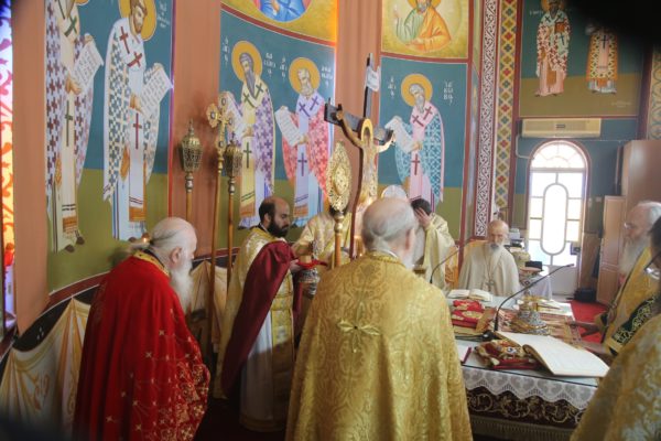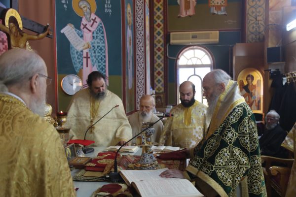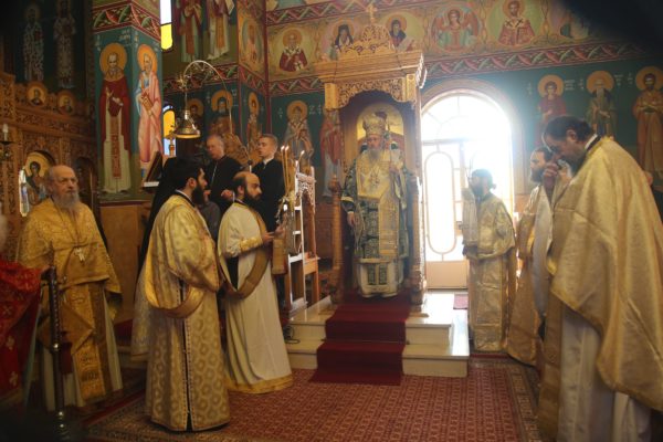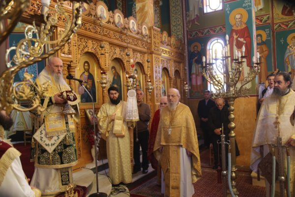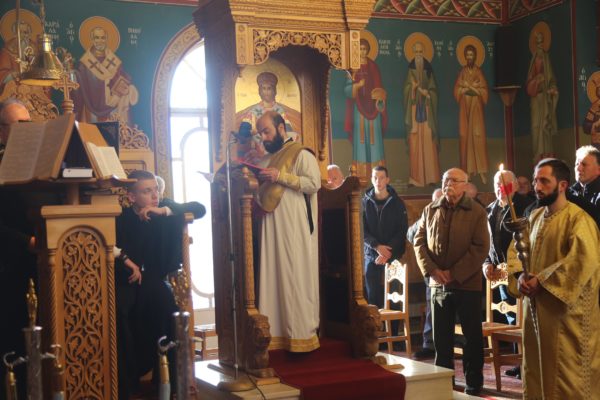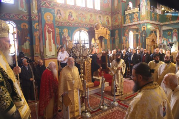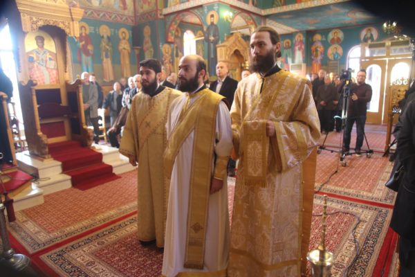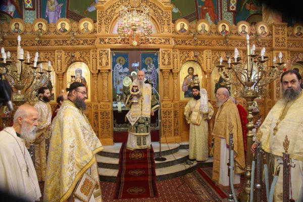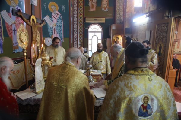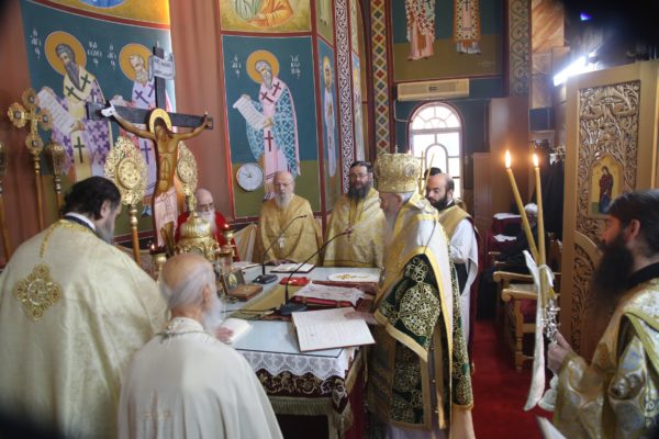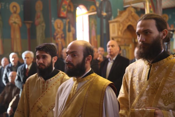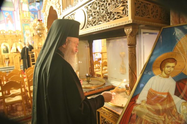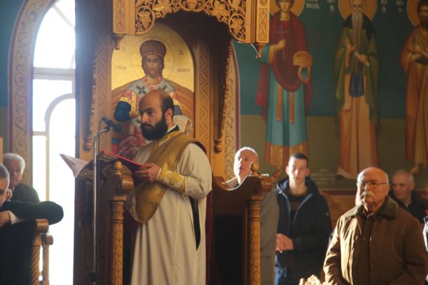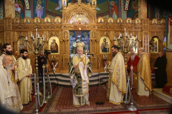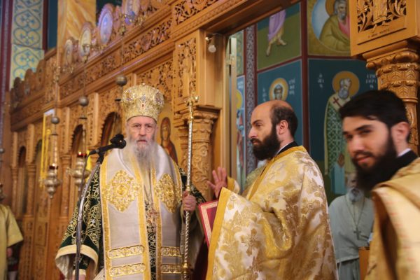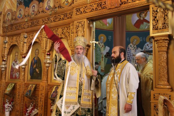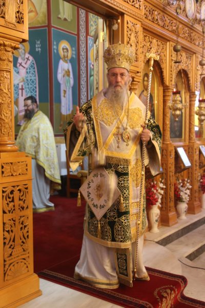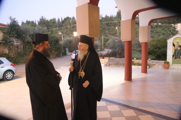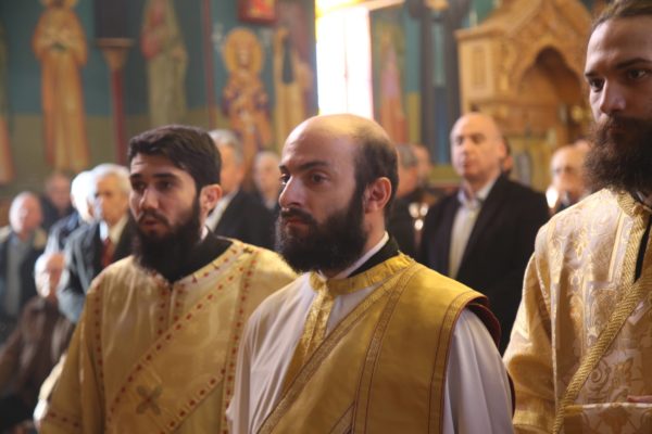 Με τον Σεβασμιώτατο συλλειτούργησαν οι Ιερείς: Αρχιμανδρίτης π. Πολύκαρπος Παστρωμάς, Ηγούμενος της Ιεράς Μονής Αμπελακιωτίσσης, Αρχιμανδρίτης π. Αντώνιος Βαζούρας, π. Θωμάς Βαμβίνης, Γενικός Αρχιερατικός Επίτροπος, Αρχιμανδρίτης π. Πολύκαρπος Θεοφάνης, ιεροκήρυξ, π. Ξενοφών Τριβήλος, Εφημέριος του Ιερού Ναού και οι Διάκονοι π. Παΐσιος Παρασκευάς, π. Αντώνιος Αντωνιάδης και π. Ιερόθεος Καλλίας.