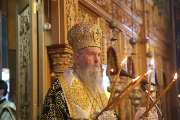 Ο Σεβασμιώτατος άρχισε την αντιφώνησή του σχολιάζοντας την εικόνα του Σπηλαίου της Βηθλεέμ, κατά την Γέννηση του Χριστού. Είπε ότι όλη αυτή η εικόνα του Σπηλαίου με την φάτνη θυμίζει μια Θεία Λειτουργία. Στο μέσον του Σπηλαίου είναι ο Χριστός στην φάτνη, η Υπεραγία Θεοτόκος είναι η Μητέρα Του, η Εκκλησία, αλλά προσφέρουν τα δώρα τους, οι Ποιμένες με την καθαρότητα της καρδιάς, οι Μάγοι με την ανδρεία τους, οι άγγελοι προσφέρουν τον ύμνο, ο Ιωσήφ την διακονία του, ακόμη και τα ζώα, όλη η κτίση βρίσκεται στην θεία Λειτουργία και έχουν κέντρο τον Χριστό και δέχονται Χάρη, αναλόγως. Η Εκκλησία προσεύχεται στην Θεία Λειτουργία για όλον τον κόσμο. Στο βάθος του Σπηλαίου είναι το σκοτάδι, που είναι ο εκτός της θείας Λειτουργίας κόσμος, με τα προβλήματα, τον πόνο, τα πάθη και βρίσκονται σε αναζήτηση λύτρωσης.