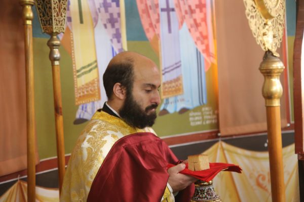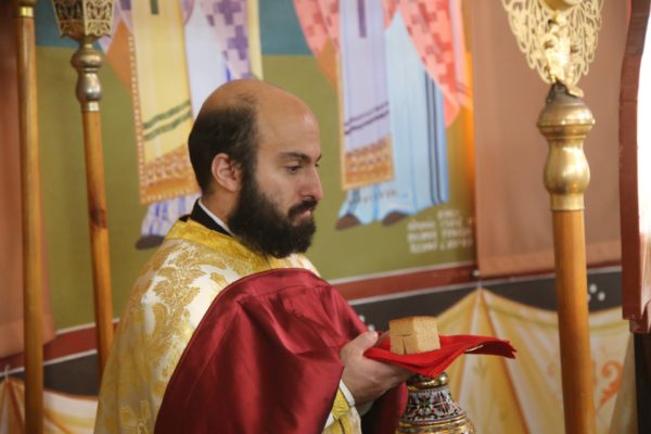 Στο τέλος της Θείας Λειτουργίας το αντίδωρο μοιράστηκε από τον νέον Ιερέα, τον π. Αθανάσιο, και οι πιστοί του ευχήθηκαν το «Άξιος».