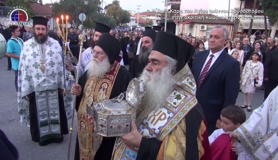 Βίντεο 20 Νοεμβρίου, 2019 Η Τιμία Κάρα του Ιερού Χρυσοστόμου στον ακριτικό Ευρωπό Διαδώστε: Διαδώστε: