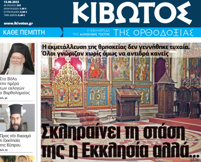 Βίντεο 14 Ιουνίου, 2023 Την Πέμπτη 15 Ιουνίου κυκλοφορεί το νέο φύλλο της εφημερίδας «Κιβωτός της Ορθοδοξίας» Διαδώστε: Διαδώστε: