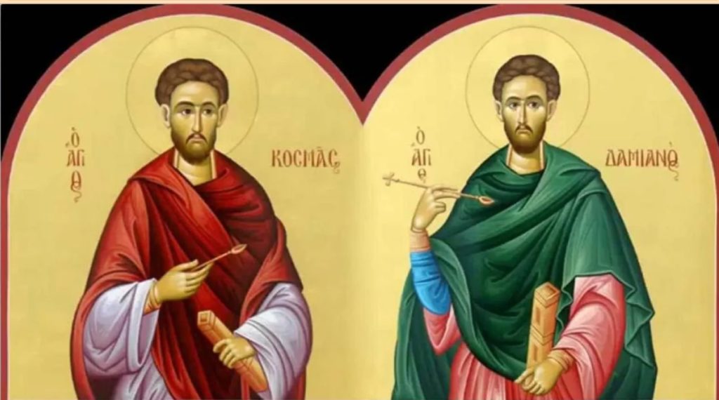 Τα αδέρφια Κοσμάς και Δαμιανός, οι οποίοι έζησαν την εποχή που αυτοκράτορας των Ρωμαίων ήταν ο Καρίνος, ήταν γιατροί στο επάγγελμα και παρείχαν ιάσεις σε όλους όσους είχαν ανάγκη, και για αντάλλαγμα δεν έπαιρναν χρήματα, αλλά το μόνο πού ζητούσαν ήταν να πιστεύσουν στον Χριστό.