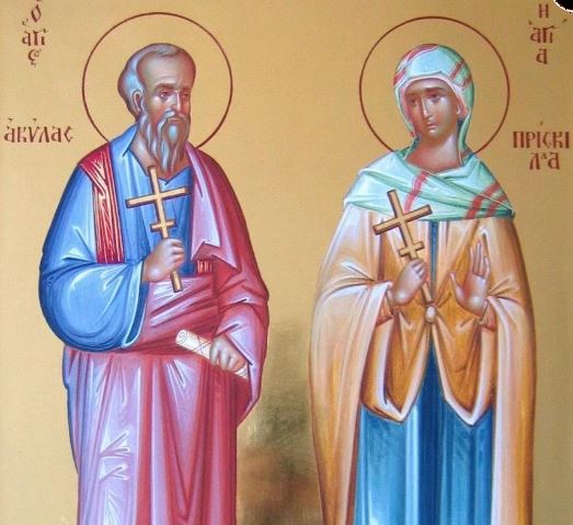 Οι Άγιοι Απόστολοι Ακύλας και Πρίσκιλλα ήταν ζευγάρι Ιουδαίων και καταγόταν από τον Πόντο. Κατοικούσαν στην Κόρινθο και εξασκούσαν το επάγγελμα του σκηνοποιού. Ήσαν δε άνθρωποι ενάρετοι και ευσεβείς.