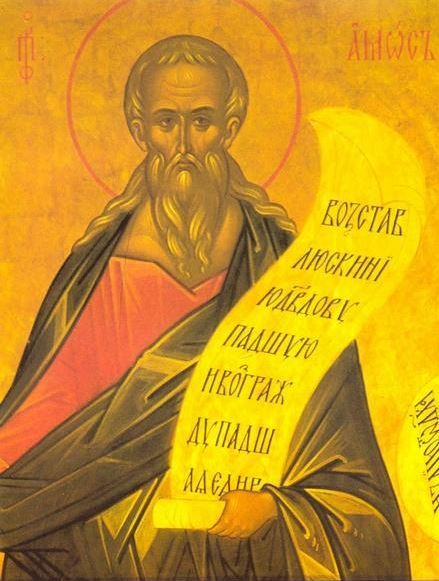 Ο Προφήτης Αμώς ήταν βοσκός, αλλά η χάρις του Αγίου Πνεύματος και η αφοσίωσή του στο θέλημα του Τριαδικού Θεού τον ανέδειξαν σε Προφήτη. Έζησε 800 χρόνια προ Χριστού, και στις προφητείες του χρησιμοποιεί σκληρή γλώσσα και ελέγχει αυστηρά τον αποστάτη από το θέλημα του Θεού, λαό του Ισραήλ.