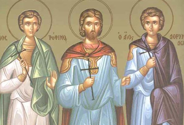 Σήμερα, Εκκλησία τιμά τη μνήμη των Μαρτύρων Τροφίμου, Σαββατίου και Δορυμέδοντος.