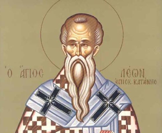 Ο Άγιος Λέων γεννήθηκε στη Ραβέννα από οικογένεια ευγενών και διακρινόταν από την παιδική του ηλικία για τη θερμή πίστη, τον ιεραποστολικό ζήλο και τον ενάρετο βίο του. Χειροτονήθηκε πρεσβύτερος στην πατρίδα του και κατά λαϊκή απαίτηση ανήλθε στον επισκοπικό θρόνο της Κατάνης στη Σικελία.