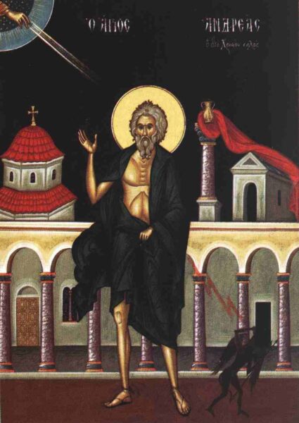 Ο Άγιος Ανδρέας, ο διά Χριστόν σαλός, καταγόταν από την Σκυθία και έζησε κατά τους χρόνους του αυτοκράτορα Λέοντος ΣΤ’ του Σοφού (886 – 912 μ.Χ.). Από παιδική ηλικία είχε πουληθεί ως δούλος σε κάποιον πρωτοσπαθάριο και στρατηλάτη της Ανατολής, ονομαζόμενο Θεόγνωστο, άνδρα ενάρετο και ευσεβή, ο οποίος τόσο αγάπησε τον μικρό Ανδρέα, ώστε τον μεταχειρίστηκε ως υιό του, φροντίζοντας για την επιμελή και θεοσεβή μόρφωση αυτού.