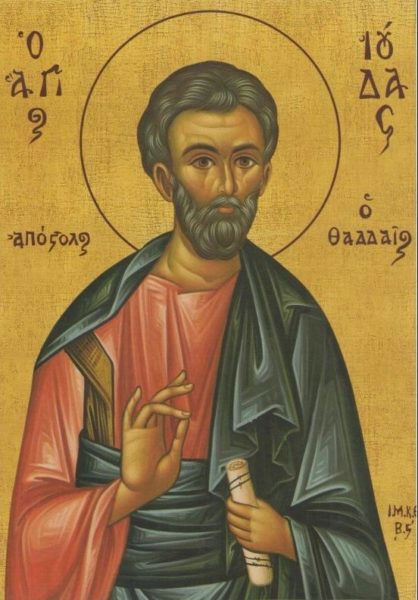 Σήμερα η αγία μας Εκκλησία τιμά τη μνήμη του Αγίου Αποστόλου Ιούδα του Αδελφόθεου, γνωστού και ως Θαδδαίου ή Λεββαίου.