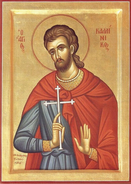 Ο Άγιος Καλλίνικος κατάγονταν από την Κιλικία και η μνήμη του τιμάται 29 Ιουλίου έκαστου έτους. Ήταν ευσεβής και ενάρετος και είχε σαν έργο ζωής την κατήχηση των εθνικών με σκοπό τη σωτηρία τους. Όταν έφθασε στην Αίγυπτο, φανατικοί ειδωλολάτρες εξεγέρθηκαν εναντίον του, τον συνέλαβαν και τον οδήγησαν στον ηγεμόνα Σακέρδωνα. Αυτός, υποκρινόμενος, έδειξε ότι λυπάται, και για να κάμψει το φρόνημα του Καλλινίκου, ανέφερε δήθεν περιστατικά πρώην γενναίων χριστιανών, που όταν αντίκρισαν τα σκληρά βάσανα, αρνήθηκαν την πίστη τους.
