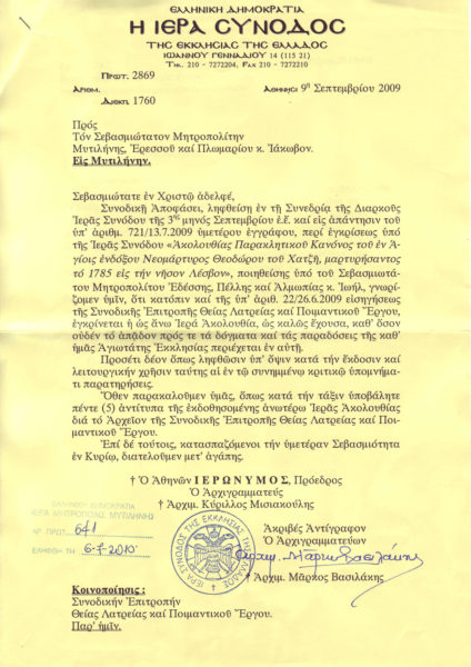 Διαβάστε την απόφαση της Ιεράς Συνόδου για την έγκριση Ακολουθίας Παρακλητικού Κανόνος του Αγίου Θεοδώρου του Χατζή: