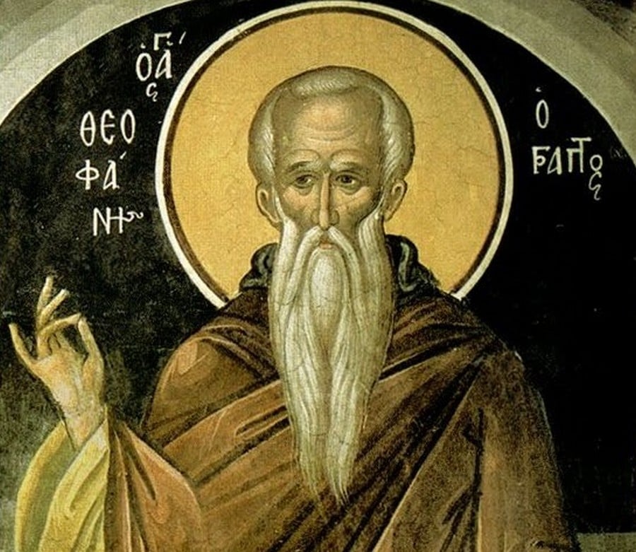 Ένας από αυτούς υπήρξε ο άγιος Θεοφάνης ο επονομαζόμενος Γραπτός. Γεννήθηκε στην Παλαιστίνη το 745. Πατέρας του ήταν ο ευσεβής Ιωαννάς, ο οποίος φρόντισε να μεταδώσει, τόσο στον ίδιο, όσο και στον αδελφό του Θεόδωρο την ευσέβεια. Φρόντισε επίσης να τους μορφώσει, στέλνοντάς τους στη φημισμένη Μονή του Αγίου Σάββα, κοντά στο σοφό διδάσκαλο Γέροντα Μιχαήλ, να σπουδάσουν την ιερή επιστήμη της Θεολογίας, καθώς και αρχαία Ελληνικά, γραμματική, ποίηση, μουσική κλπ.